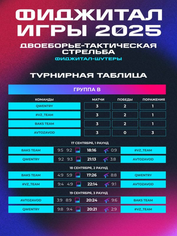 На Фиджитал Играх наши команды повторили успех Чемпионата России по фиджитал спорту 2025! Еще раз поздравляем, спортсмены: гордимся вами и очень ценим! Все фотографии турнира готовы – заглядывайте в альбом группы ВКонтакте!